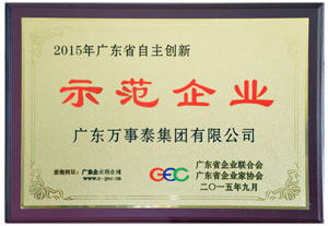 萬事泰集團獲“2015年廣東省自主創(chuàng)新示范企業(yè)”榮譽稱號推薦