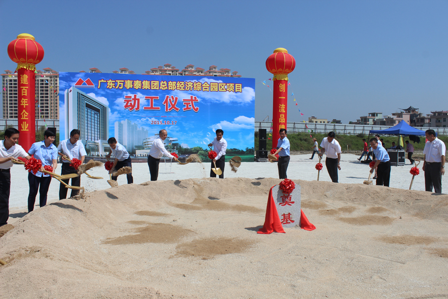 10月17日上午,云浮市政協(xié)主席黃達輝、市人大常務(wù)副主任黃伙有、新興縣委書記人大常務(wù)主任葉銳、縣委副書記縣長唐誼、縣政協(xié)主席梁國華、縣政協(xié)黨組書記區(qū)耀啟、縣委副書記陳就慶、縣人大常務(wù)副主任梁錦釗等新興縣政府四套領(lǐng)導班子約70余人出席了萬事泰集團總部經(jīng)濟綜合園區(qū)項目動工儀式,集團管理人員代表近200人參加了此次活動。