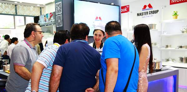 萬事泰特別策劃安排了中英雙語美女主持人與模特廚師演示一同配合的演示模式,美女廚師為往來客商演示萬事泰2015新研發(fā)的智能操控廚具,同時(shí)主持人用中英文分別介紹廚具的優(yōu)勢(shì)亮點(diǎn)。每每介紹一開始,便吸引了大批智能廚房愛好客商駐足了解,別具吸引力。