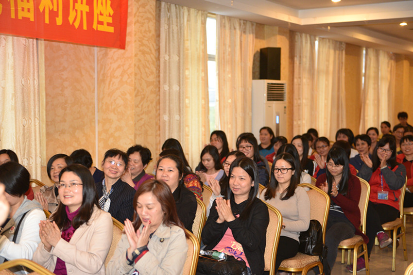 2016年3月8日下午5-6時(shí),南豪酒店5樓1號(hào)會(huì)議廳,順德知名學(xué)者型主持人、佛山大思享文化傳播有限公司簽約講師葉琳琳女士為集團(tuán)員工帶來了一場(chǎng)福利專題講座《讓你的工作更完美,家庭更幸?!?,新興縣婦聯(lián)副主席梁翠英,新興縣經(jīng)貿(mào)系統(tǒng)黨委副書記、工會(huì)主席陳婉華等領(lǐng)導(dǎo)出席活動(dòng),集團(tuán)女員工有近百人參與,現(xiàn)場(chǎng)氣氛活躍,老師與員工進(jìn)行了深入的溝通交流。新興電視臺(tái)等媒體到場(chǎng)報(bào)道,并對(duì)活動(dòng)主策劃人、萬事泰集團(tuán)工會(huì)主席梁洪光進(jìn)行采訪。