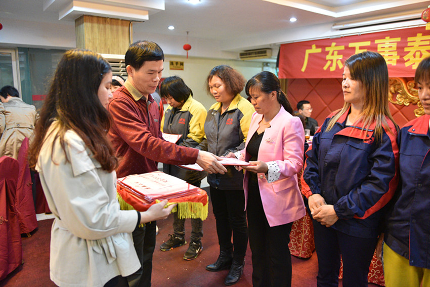 在這個(gè)特別的日子里,為了讓女員工們享受到作為女性的幸福和快樂,感受到萬事泰集團(tuán)對(duì)員工的關(guān)懷與愛護(hù),公司組織員工聚餐,歡度三八婦女節(jié)。集團(tuán)10級(jí)以上女員工、“三八”紅旗手、2015度優(yōu)秀女員工共500余人參加慶?;顒?dòng),新興縣婦聯(lián)副主席梁翠英、縣經(jīng)貿(mào)系統(tǒng)黨委副書記、工會(huì)主席陳婉華等領(lǐng)導(dǎo)出席活動(dòng),萬事泰集團(tuán)黨支部書記陳永錦、工會(huì)主席梁洪光、財(cái)務(wù)總監(jiān)梁玉芳為“三八”紅旗手頒發(fā)了證書和獎(jiǎng)金,向全體女員工致以節(jié)日的問候和送上美好的祝愿。