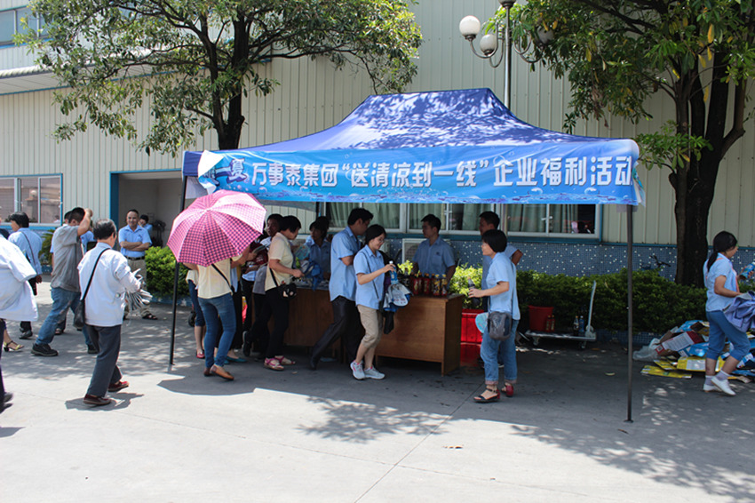 集團訊 2016年7月22日,大暑,氣溫達到36攝氏度。萬事泰集團“送清涼到一線”企業(yè)文化福利活動在集團總部、分公司相繼展開,多種冰鎮(zhèn)冷飲,在酷熱的午后時分,為如期上班的一線員工送上一份清涼。據(jù)悉,高溫天氣為集團員工免費派發(fā)解暑飲品,是萬事泰的傳統(tǒng)員工福利,彰顯集團在盛夏時節(jié)對員工的身體健康細心關懷。