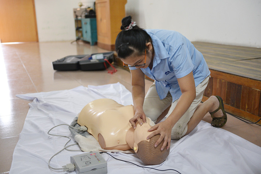 培訓(xùn)會上,老師以知識宣講、圖片展示、教學(xué)短片播放、模擬操作等方式向現(xiàn)場學(xué)員們生動講解正確的急救知識和操作方法。理論學(xué)習(xí)過程中,學(xué)員們端坐桌前,認(rèn)真聽講,不時(shí)提出自己的疑問。實(shí)踐操作中,學(xué)員們積極主動參與,并跟隨老師的示范,謹(jǐn)慎細(xì)致地完成每一個(gè)急救動作。學(xué)員們的課堂表現(xiàn)得到老師的充分認(rèn)可。