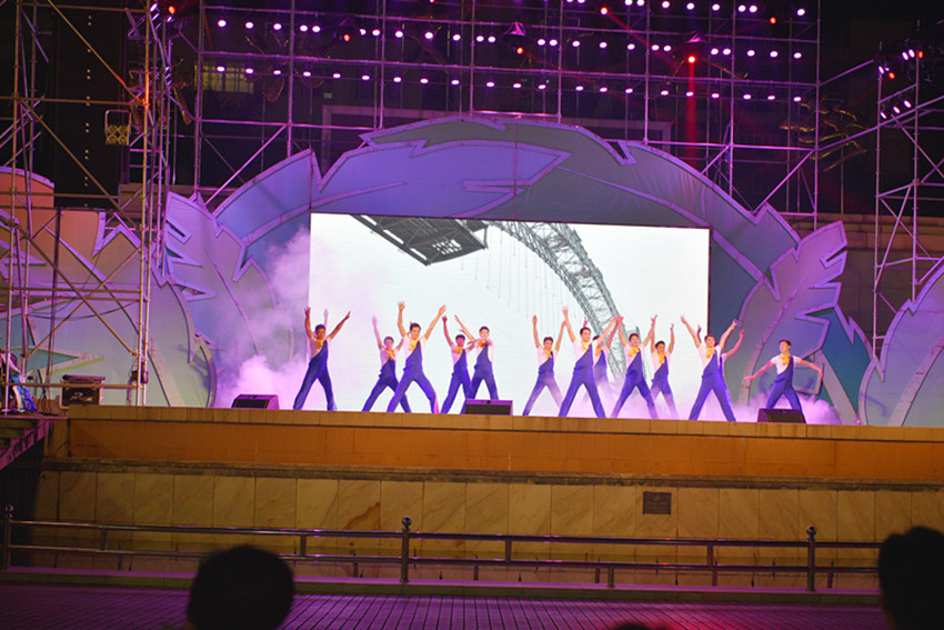 廣場內(nèi)燈光璀璨,歡樂的音樂聲此起彼伏,舞臺下座無虛席,場面熱鬧非凡。晚會以一支歡快而激揚的舞蹈拉開了序幕,歌唱家們美妙的歌聲吸引了臺下不少群眾一起和聲吟唱,一曲風靡全國的神曲《小蘋果》更是讓臺下小觀眾們手舞足蹈,還有相聲、魔術等精彩節(jié)目都引得臺下觀眾掌聲陣陣。