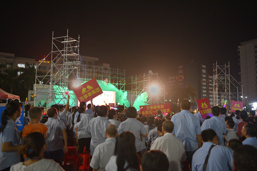 萬事泰集團帶著政府與總工會的關心,讓廣大職工、家屬真正感受到集團的關愛,萬事泰集團工會誠邀集團職工觀看演出。當晚7時許,萬事泰集團員工們緩緩入場,有序地坐到自己的位置上,精神飽滿地欣賞精彩的節(jié)目。