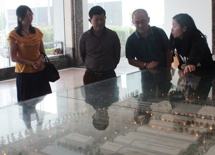講解員為領(lǐng)導(dǎo)們解說集團布局模型