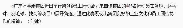 南方日?qǐng)?bào)訊(新興視窗記者/譚笑 通訊員/黎德杰)12月3日晚,廣東萬事泰集團(tuán)第九屆員工運(yùn)動(dòng)會(huì)在新興縣體育中心籃球館內(nèi)開幕。新興體育局局長(zhǎng)梁紹林、萬事泰集團(tuán)常務(wù)副總裁劉炳耀、集團(tuán)工會(huì)主席梁洪光、萬富投資公司總經(jīng)理梁炎泉以及該集團(tuán)各部門負(fù)責(zé)人出席活動(dòng)。