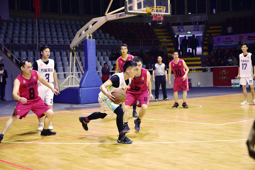 在男子籃球冠軍爭奪戰(zhàn)上,總部聯(lián)隊與萬富投資進(jìn)行激烈角逐。