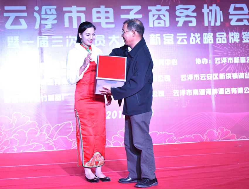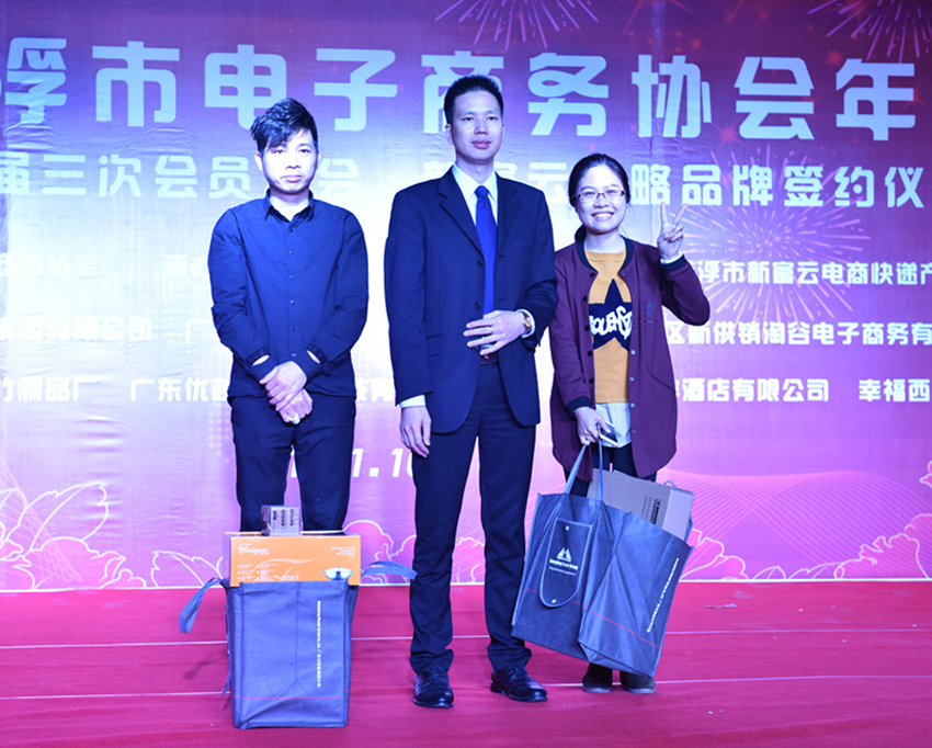 云浮市電子商務(wù)協(xié)會(huì)會(huì)長(zhǎng)王燕錦為獲獎(jiǎng)幸運(yùn)兒頒獎(jiǎng)