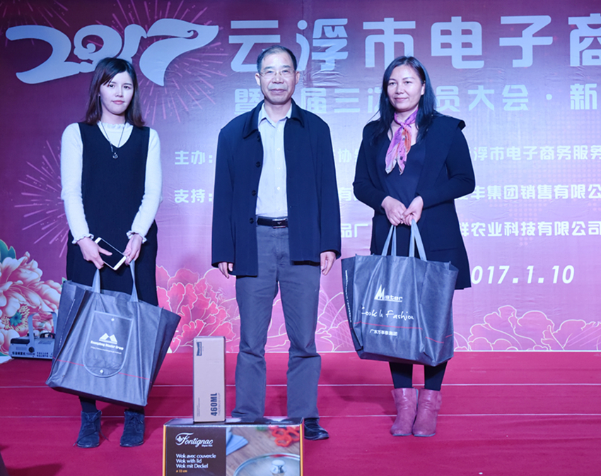 隨后,會(huì)上分別進(jìn)行2016年度協(xié)會(huì)工作報(bào)告和財(cái)務(wù)報(bào)告、2016年年度“協(xié)會(huì)先進(jìn)單位”和“電商風(fēng)云人物”頒獎(jiǎng)儀式、新入會(huì)會(huì)員單位授匾儀式及新富云戰(zhàn)略品牌簽約儀式。廣東萬(wàn)事泰集團(tuán)審計(jì)室主任譚琚作為企業(yè)代表上臺(tái)領(lǐng)獎(jiǎng)并參與抽獎(jiǎng)活動(dòng)。