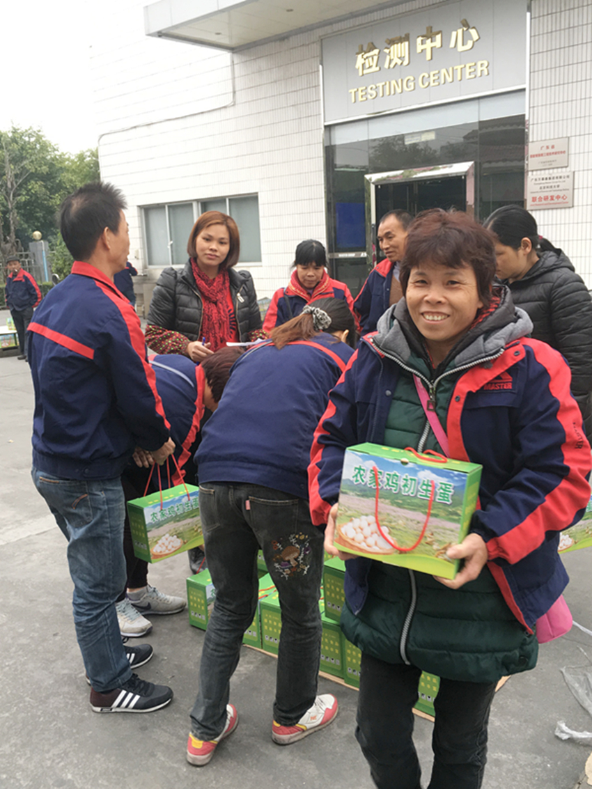 集團提前精心籌備了該次活動,并親手為每一位員工送上一份精美的禮品——雞蛋?,F(xiàn)場近2000逾名員工出席參加,一條條井然有序的隊伍像蜿蜒的長蛇,連綿不絕。員工們接過雞蛋后,臉上笑逐顏開,現(xiàn)場頓時籠罩在一片笑語盈盈的氛圍中。