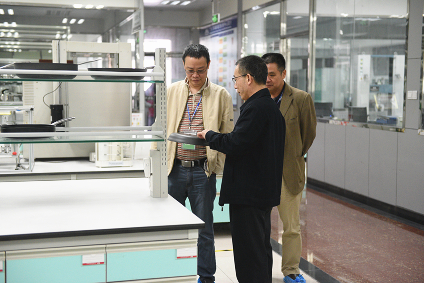 集團劉總給調研團講解檢測工序