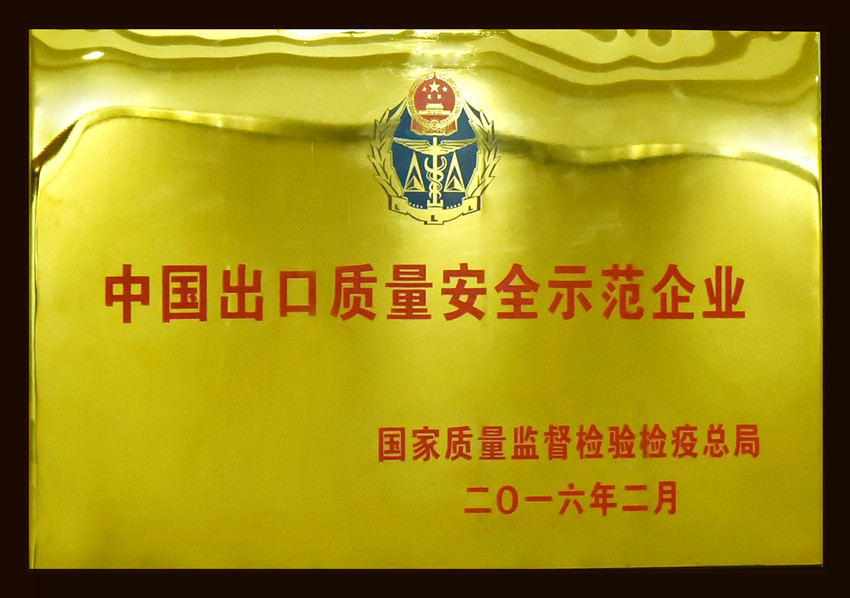 “中國(guó)出口質(zhì)量安全示范企業(yè)”牌匾