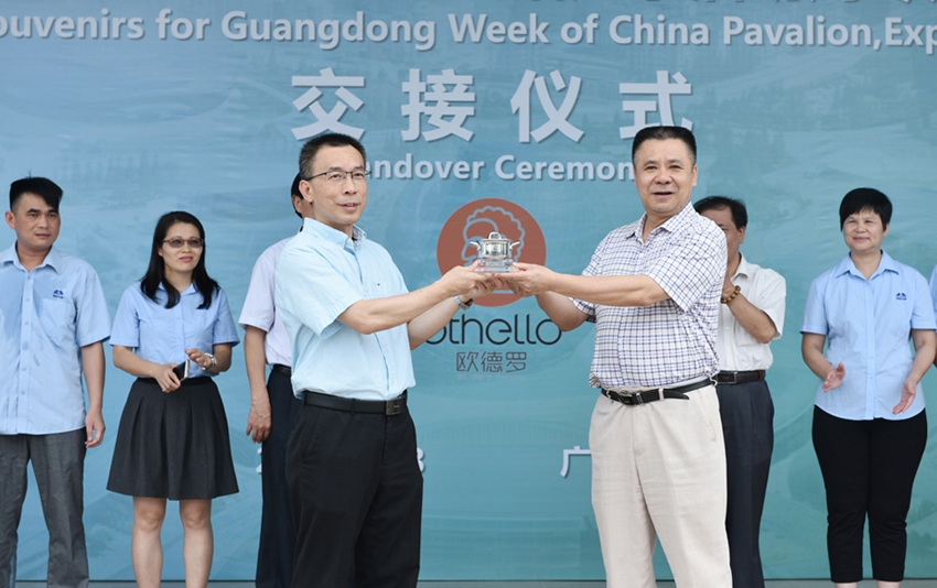 ▲othello歐德羅“2017阿斯塔納世博會中國館廣東活動周專用紀念品”交接儀式