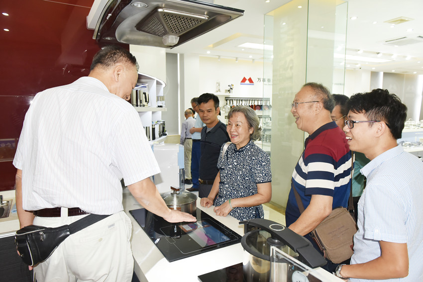 來訪專家一行首先參觀了萬事泰自主研發(fā)的智能整體廚房,了解到傳感器和智能技術應用領域對不銹鋼餐廚具行業(yè)轉型升級產生的創(chuàng)新意義。隨后在座談會上,陳永錦與專家組對集團產品創(chuàng)新情況及人才引進情況,展開了熱烈的討論。
