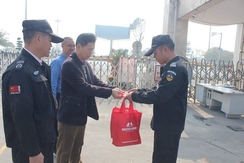 行政部經(jīng)理陳永錦為值班員工送上節(jié)日禮品、慰問金與問候。