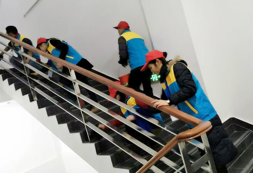 1月28日,萬事泰集團志愿者一行12人在李麗娥、溫文翠的帶領(lǐng)下到六祖廣場進行清潔大掃除,這一天的氣溫4度,陰雨連綿,但志愿者們?nèi)愿傻脽峄鸪?,抺樓梯、擦臺凳、圍欄……一連干了兩個多鐘,他們的手凍得通紅,水也顧不上喝一口,堅持把廣場內(nèi)外的清潔衛(wèi)生搞好才回家。