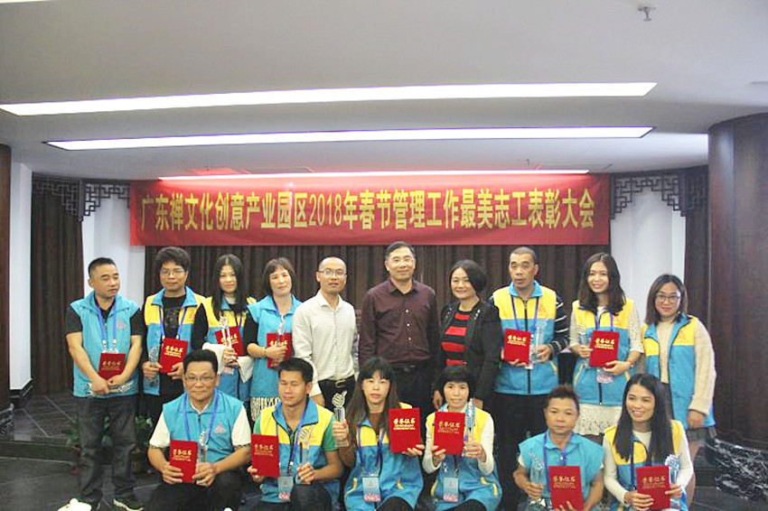 廣東禪文化創(chuàng)意產(chǎn)業(yè)園區(qū)2018年春節(jié)管理最美志工表彰大會(huì)現(xiàn)場(chǎng)。