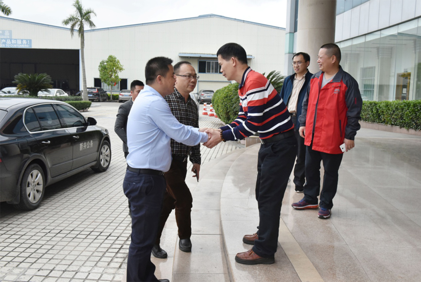 集團(tuán)訊 3月15日,廣西陸川縣縣長劉啟、副縣長劉猛一行10余人在新興縣副縣長蘇江毅、新興工業(yè)園梁礽忠主任等領(lǐng)導(dǎo)的陪同下,到我司開展考察調(diào)研活動(dòng)。集團(tuán)總裁辦主任梁賢武、總裁辦助理歐劍華、行政部經(jīng)理陳永錦熱情接待并陪同。