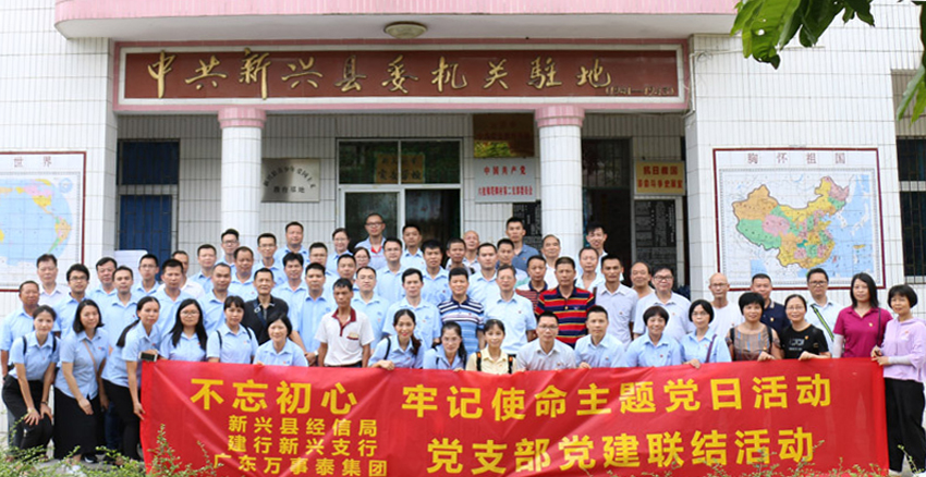集團訊 為充分展現(xiàn)基層黨組織和黨員學習宣傳貫徹十九大精神,激發(fā)廣大黨員深入學習和發(fā)揚革命傳統(tǒng)精神,通過革命傳統(tǒng)教育,使廣大黨員受到啟迪。6月30日,縣經信局、建行新興支行、萬事泰(政、銀、企)三方黨支部組織共80名黨員到云浮市中共黨史教育基地——中共新興縣委舊址六祖鎮(zhèn)三叉坑新民小學開展以“不忘初心 牢記使命”為主題的黨日活動,
