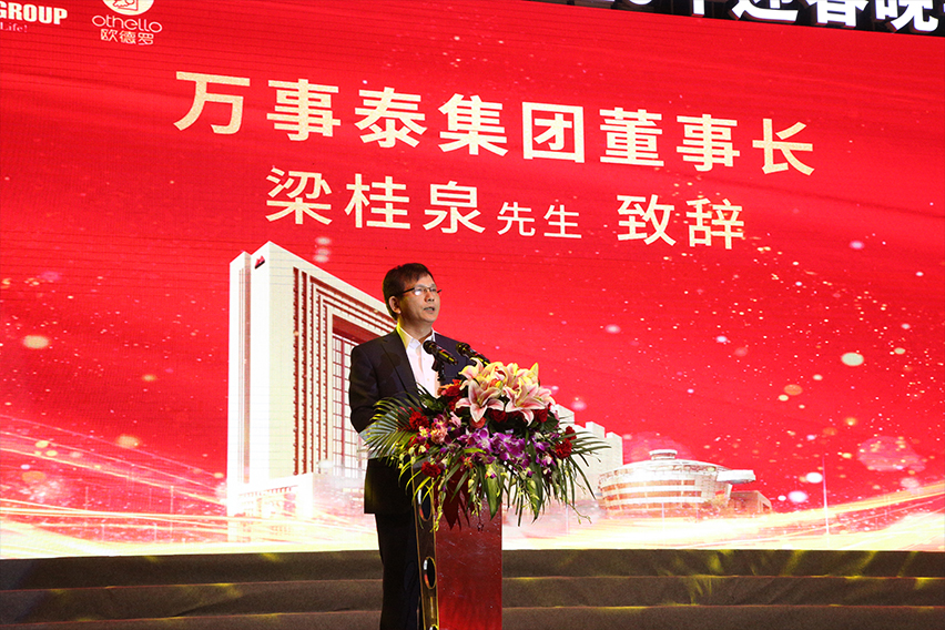 晚會致辭環(huán)節(jié),萬事泰集團董事長梁桂泉先生向在過去一年里為公司發(fā)展付出辛勤勞動的全體員工及其家屬致以最崇高的敬意,表達(dá)了最誠摯、最美好的新年祝福。同時對未來一年的公司發(fā)展方向做出階段性規(guī)劃。梁董表示:2020年已經(jīng)開局,讓我們立足更高站位,用我們的激情、智慧和勇氣,鉚足干勁,向著更高更遠(yuǎn)的目標(biāo)奮斗。