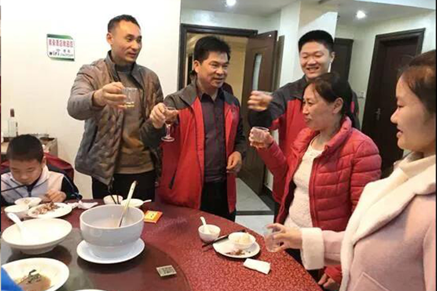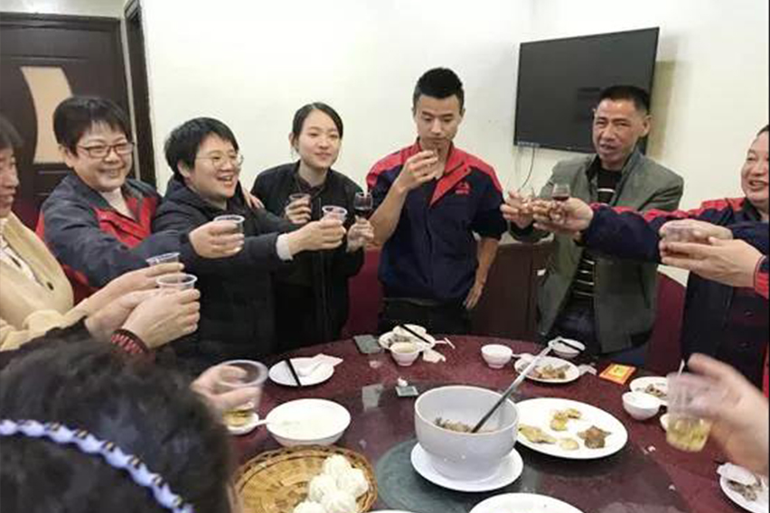 晚宴上,工會(huì)主席梁洪光代表集團(tuán)公司作了講話,并向全體外來員工致以節(jié)日的問候和深深的祝福。他說:“在新春佳節(jié)來臨之際,希望大家把萬事泰當(dāng)作是自己的家,安安心心、高高興興在萬事泰過大年?!彼€提到,“過去的一年有大家的努力,集團(tuán)在困境中能突破困難,迎難以上,取得了好成績(jī),集團(tuán)非常感謝你們!”