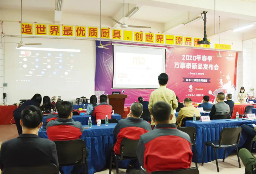 “今年的發(fā)布會相比往屆又有新的進步,本次發(fā)布的新品比較多,新品研發(fā)從2019年下半年就已開始策劃,這是產(chǎn)品策劃職能逐步發(fā)揮成效的良好呈現(xiàn),希望繼續(xù)發(fā)揚?!眲⒖偟溃斑@兩年,市場實體經(jīng)濟低迷,競爭越發(fā)激烈,降低產(chǎn)品成本成為了不銹鋼行業(yè)的共識,面對這樣的市場環(huán)境,設(shè)計研發(fā)團隊要以此作為策劃、開發(fā)的方向,推出符合市場要求的產(chǎn)品,并針對不同市場推出適當(dāng)?shù)漠a(chǎn)品,如中東地區(qū)的金色廚具、國內(nèi)的“大口鍋”等。我們每年都推出大批新品,在這里必須要求業(yè)務(wù)人員熟悉、提煉新品的特點、賣點,做到主動推銷、有把握地推銷,最終拿下訂單。另外,由于疫情影響,今年廣交會采用線上的模式,我們內(nèi)部已經(jīng)做足了準備,希望業(yè)務(wù)團隊盡快適應(yīng)新模式并抓好機會,充分用好新模式、新工具。最后祝新產(chǎn)品推廣和開發(fā)取得更好的成績?!?