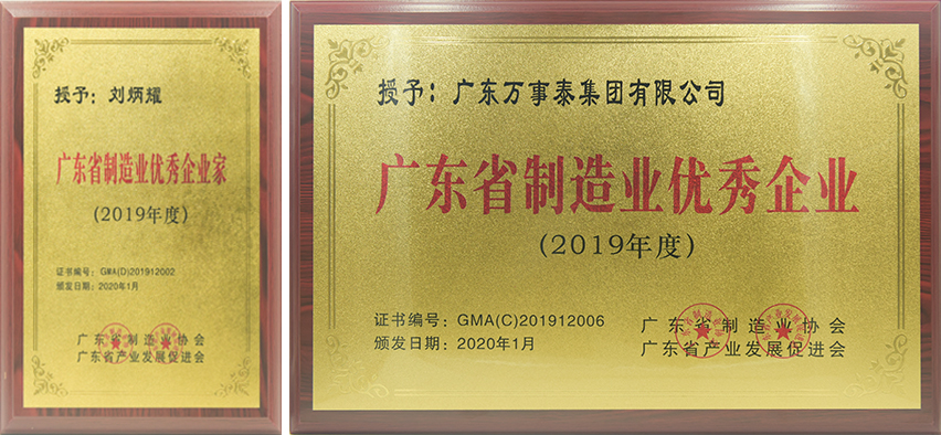 集團(tuán)訊 由廣東省產(chǎn)業(yè)發(fā)展促進(jìn)會、廣東省制造業(yè)協(xié)會組織開展的廣東省制造業(yè)“優(yōu)秀企業(yè)及企業(yè)家”的評選活動,廣東萬事泰集團(tuán)榮獲“廣東省制造業(yè)優(yōu)秀企業(yè)”省級稱號、集團(tuán)常務(wù)副總裁劉炳耀獲得“廣東省制造業(yè)優(yōu)秀企業(yè)家”稱號。