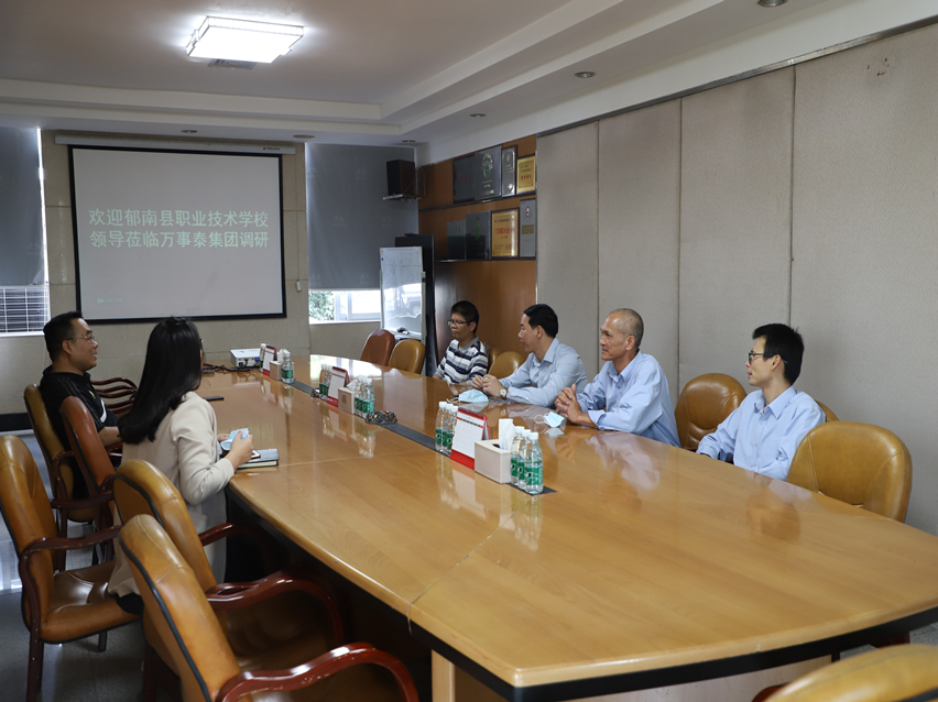 集團(tuán)訊 11月26日,郁南縣職業(yè)技術(shù)學(xué)校領(lǐng)導(dǎo)一行蒞臨我司調(diào)研,萬事泰集團(tuán)人力資源中心副總監(jiān)趙帆、企業(yè)文化部副經(jīng)理歐淑慧等集團(tuán)領(lǐng)導(dǎo)陪同調(diào)研。