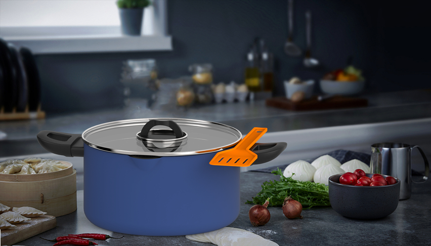 本次獲獎的水平系列鍋具去繁從簡,實(shí)用至上,兼顧簡約設(shè)計。采用鋁制鍋身,加熱速度快,大大縮減烹飪時間,提高烹飪效率及減少燃料的使用。蓋耳做了特殊的可折疊結(jié)構(gòu)設(shè)計,配合下沉式玻璃蓋進(jìn)行裝備,使得整套鍋具完美地實(shí)現(xiàn)了鍋蓋可平放堆疊的功能。一個套裝,6種玩法,集煎煮燜燉炸多種功能,帶給烹飪者更多的烹飪樂趣。