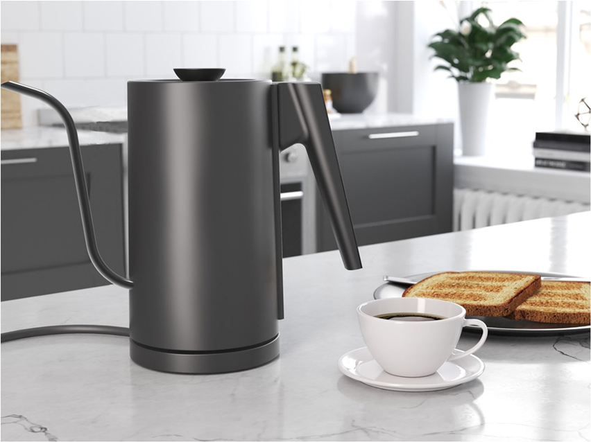 同獲殊榮的手沖咖啡壺新穎獨(dú)特、色彩多樣,流暢的線條感設(shè)計搭配亞光外色更顯典雅,如高雅端莊的“貴婦”?!笆譀_咖啡壺+智能煮水壺”的一體化設(shè)計,智能化的精準(zhǔn)控溫與保溫,讓咖啡粉能更均勻地接受同一種溫度的萃取。從功能、材質(zhì)與整體設(shè)計上不斷突破和創(chuàng)新的手沖咖啡壺,不僅節(jié)約沖泡咖啡的時間,還讓咖啡品質(zhì)更有保證。