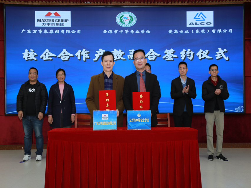 集團(tuán)訊 12月23日,萬事泰集團(tuán)與云浮市中等專業(yè)學(xué)校隆重舉行了校企合作簽約儀式。萬事泰集團(tuán)人力資源中心副總監(jiān)趙帆、行政部經(jīng)理陳永錦、云浮市中等專業(yè)學(xué)校領(lǐng)導(dǎo)及部分師生代表參加了此次簽約儀式。儀式由云浮市中等專業(yè)學(xué)校黨委副書記朱成豹主持。