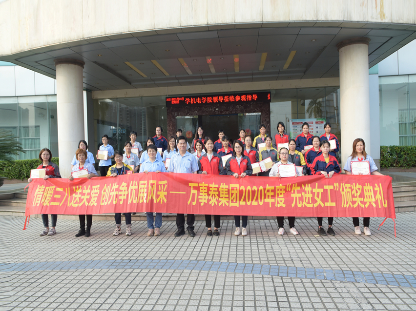 集團(tuán)訊 3月18日,萬事泰集團(tuán)舉行2020年度“先進(jìn)女工”頒獎(jiǎng)典禮,萬事泰集團(tuán)黨支部書記、工會主席梁洪光為33位先進(jìn)女工頒發(fā)榮譽(yù)證書及獎(jiǎng)金。