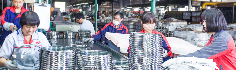 集團(tuán)擁有先進(jìn)的大規(guī)模生產(chǎn)基地,屬下工廠占地23萬(wàn)余平方米, 標(biāo)準(zhǔn)廠房面積15萬(wàn)多平方米,擁有自動(dòng)/半自動(dòng)生產(chǎn)線 20 余條、各類先進(jìn)機(jī)械設(shè)備達(dá) 2000 多臺(tái)(套),主要生產(chǎn)設(shè)備和質(zhì)量檢測(cè)設(shè)備均為進(jìn)口或采用國(guó)內(nèi)一流設(shè)備,關(guān)鍵技術(shù)從歐洲、日韓等國(guó)引進(jìn),設(shè)備 技術(shù)水平居于國(guó)內(nèi)行業(yè)領(lǐng)先。集團(tuán)生產(chǎn)能力位居行業(yè)前列,年可生產(chǎn)各種規(guī)格的不銹鋼餐廚炊具、鋁制餐廚鍋具達(dá)2800萬(wàn)只、鋼化玻璃蓋1200萬(wàn)只,小家電200萬(wàn)只,不銹鋼和鋁制品年加工能力超過(guò)36000 噸,年可出口貨值超過(guò) 3500 個(gè)標(biāo)準(zhǔn)貨柜,能滿足世界各地客 戶大規(guī)模的訂單需要。