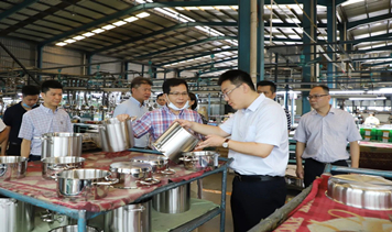 集團(tuán)訊 6月19日上午,廣東省廢鋼相關(guān)協(xié)會(huì)及企業(yè)調(diào)研組一行蒞臨我司調(diào)研,萬(wàn)事泰集團(tuán)行政部經(jīng)理陳永錦、廚具中心黃錦釗接待并陪同調(diào)研。調(diào)研中,調(diào)研小組參觀了萬(wàn)事泰生產(chǎn)車間的自動(dòng)化生產(chǎn)線,詳細(xì)了解了萬(wàn)事泰自動(dòng)化生產(chǎn)情況,以及在廢鐵回收、加工上的工作規(guī)劃。調(diào)研組一行參觀自動(dòng)化生產(chǎn)線文/圖? 陳彩環(huán)