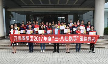 集團(tuán)訊 芳華三月。29日,廣東萬事泰集團(tuán)2017年度“三·八紅旗手”頒獎(jiǎng)典禮在萬事泰總部一樓舉行,集團(tuán)工會(huì)主席梁洪光應(yīng)邀出席,以及來自各部門的36名三·八紅旗員工參與了本次活動(dòng)并合影留念。萬事泰集團(tuán)每年都會(huì)頒給優(yōu)秀女員工“三·八紅旗手”榮譽(yù)稱號(hào),主要表彰在過去一年里,在生產(chǎn)上、管理等方面涌現(xiàn)出的婦女先進(jìn)人物,對(duì)她們的辛勤付出表示衷心的感謝。另外,希望受表彰的女員工們?cè)俳釉賲?、立足本職,?hellip;