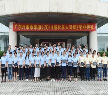 集團訊?8月10日,廣東萬事泰集團2014屆秋季大專班畢典禮在萬事泰總部一樓舉行,來自各部門60余名學(xué)子參加了典禮并合影留念。辛勤三載,終得所成,祝賀順利畢業(yè)的萬事泰員工學(xué)子們!萬事泰走過三十年的創(chuàng)業(yè)發(fā)展歷程,能有今天的成就,關(guān)鍵因素是我們擁有一批敢想敢闖,勤奮務(wù)實的團隊和人才。有句話說的好,現(xiàn)在睡覺的話會做夢,而現(xiàn)在學(xué)習(xí)的話會讓夢實現(xiàn),加入萬事泰大家庭,只要你愿意,萬事泰會為你搭建起廣…