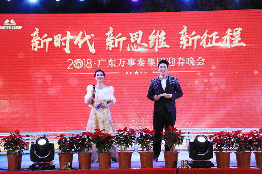 集團訊 凱歌辭舊歲,駿狗迎新春。2月8日晚,新時代、新思維、新征程——2018年廣東萬事泰集團迎春晚會隆重舉行,縣領(lǐng)導(dǎo)、新城鎮(zhèn)、太平鎮(zhèn)等相關(guān)領(lǐng)導(dǎo),萬事泰集團董事長梁桂泉、常務(wù)副總裁劉炳耀及相關(guān)各部門領(lǐng)導(dǎo)、員工們,供應(yīng)商代表等一同歡聚一堂,共慶新春。