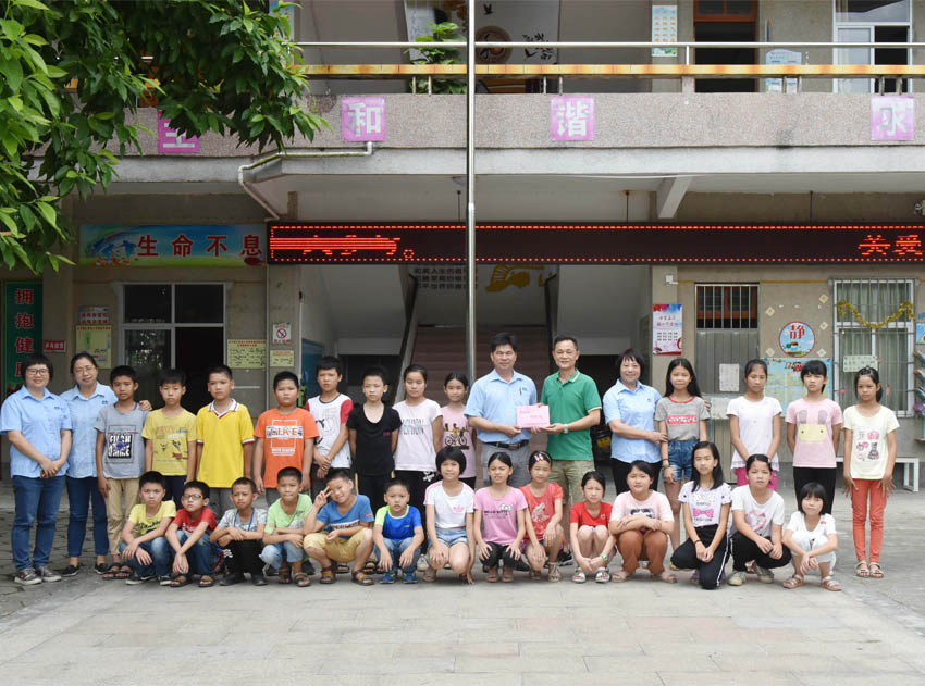 萬(wàn)事泰工會(huì)主席梁洪光代表集團(tuán)為王香地小學(xué)送上六一慰問(wèn)金