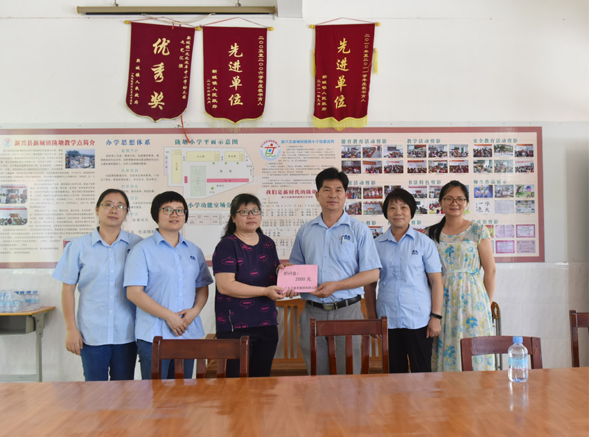 萬(wàn)事泰工會(huì)主席梁洪光代表集團(tuán)為隴塘小學(xué)送上六一慰問(wèn)金