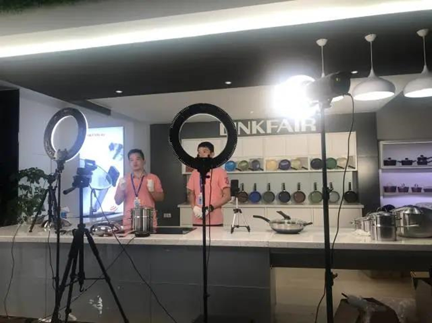 在萬事泰集團(tuán),總共安排了十八場直播和一場新品發(fā)布會,充分利用自有廚房樣板間和產(chǎn)品展示廳等資源,直接把直播間設(shè)在實體廚房,5名業(yè)務(wù)主播們通過詳細(xì)講解、烹飪演示以及插播產(chǎn)品視頻,按產(chǎn)品類別來直播銷售該公司本屆的新產(chǎn)品。