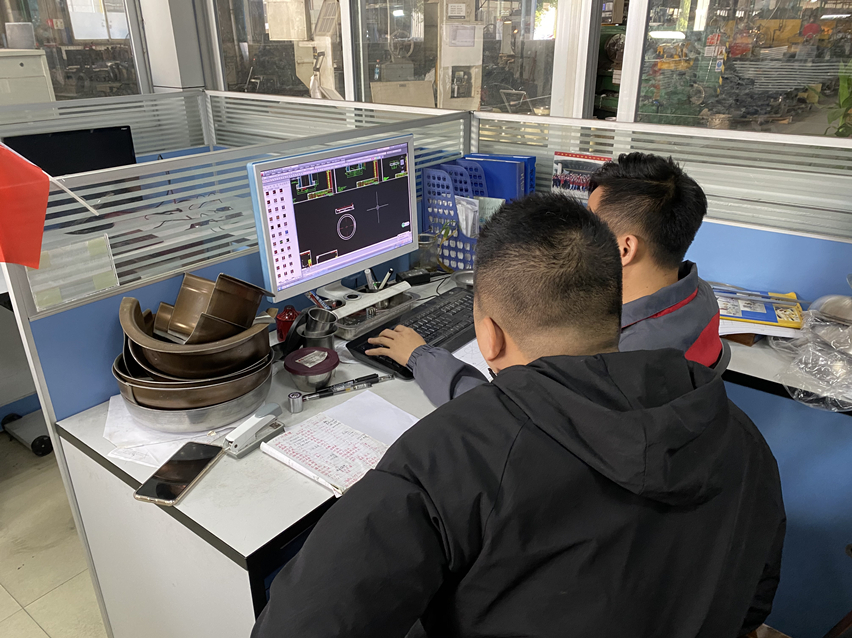 經(jīng)過工程部辦公室,傳來一陣教學的聲音:“模型這里分開標數(shù),這些數(shù)據(jù)代表......”走進一看,是一對師徒正在描繪著圖紙,交流著CAD操作技術。師傅陳偉強用高標準、嚴要求的原則教導徒弟,言傳身教地帶領徒弟在萬事泰一步步前進。