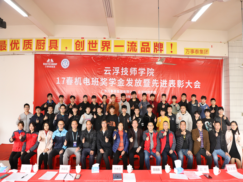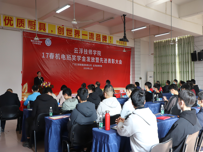 集團(tuán)訊 為加強(qiáng)校企人才培養(yǎng),表?yè)P(yáng)先進(jìn),樹(shù)立典型,通過(guò)表彰先進(jìn)學(xué)生,激勵(lì)后進(jìn),引導(dǎo)學(xué)生刻苦學(xué)習(xí)、努力工作、德技并修。12月22日,云浮技師學(xué)院17春機(jī)電班獎(jiǎng)學(xué)金發(fā)放暨先進(jìn)表彰大會(huì)在萬(wàn)事泰總部三樓培訓(xùn)室順利舉行。萬(wàn)事泰集團(tuán)廚具中心總經(jīng)理鐘木營(yíng)、廚具中心副總經(jīng)理蘇旭東、人力資源中心副總監(jiān)趙帆等集團(tuán)領(lǐng)導(dǎo)出席,出席表彰大會(huì)的還有云浮技師學(xué)院黨委書(shū)記楊曉明、副院長(zhǎng)梁新林、先進(jìn)制造系系主任馮文妍、校企合作辦主任陳植輝等學(xué)院領(lǐng)導(dǎo)及17春機(jī)電高級(jí)班學(xué)生共計(jì)50余人。表彰大會(huì)由技師學(xué)院陳植輝主持。