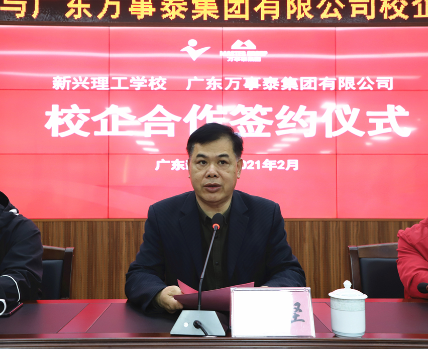 集團(tuán)訊 2月22日上午,萬事泰集團(tuán)與新興理工學(xué)校校企合作簽約儀式在新興理工學(xué)校學(xué)術(shù)報(bào)告廳順利舉行。新興縣教育局黨組成員、成教辦主任黃衛(wèi)華先生,新興理工學(xué)校校長(zhǎng)伍松堅(jiān)、副校長(zhǎng)陳偉彬、學(xué)校部分中高層領(lǐng)導(dǎo)、老師及學(xué)生出席了儀式,萬事泰集團(tuán)人力資源中心副總監(jiān)趙帆、行政部經(jīng)理陳永錦、企業(yè)文化部經(jīng)理歐淑慧等集團(tuán)領(lǐng)導(dǎo)參加了本次儀式。儀式由新興理工學(xué)校副校長(zhǎng)梁金權(quán)主持。