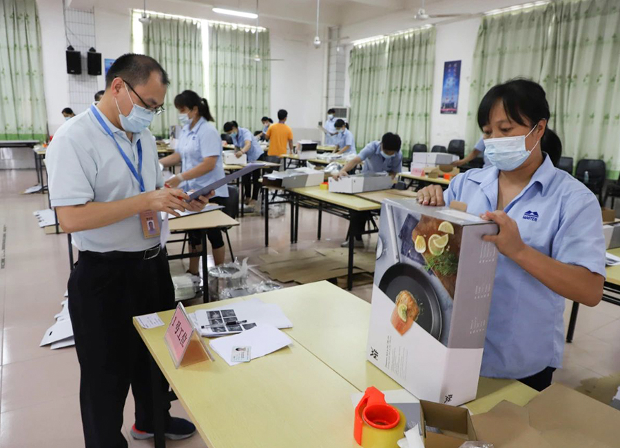 集團(tuán)訊 6月4日,在廣東萬事泰集團(tuán)培訓(xùn)室內(nèi),25名包裝技工正緊張地根據(jù)不同場景進(jìn)行著包裝操作,這是萬事泰集團(tuán)包裝工職業(yè)技能等級認(rèn)定中級工考核現(xiàn)場。自新政策改革出臺,企業(yè)可以進(jìn)行自主認(rèn)定以來,萬事泰集團(tuán)就為開展認(rèn)定工作積極籌備,并于今年6月正式迎來企業(yè)自主認(rèn)定首批開考,目前考試已結(jié)束。根據(jù)《廣東萬事泰集團(tuán)有限公司工人技術(shù)等級評聘管理暫行辦法》規(guī)定,通過理論和技能實(shí)操考核且成績合格者即可獲得廣東萬事泰集團(tuán)有限公司職業(yè)技能等級認(rèn)定資格證書。