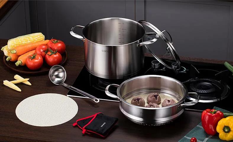 嚴選18/10不銹鋼原材,健康無涂層,耐氧化抗腐蝕,經(jīng)久耐用。加大水位刻度清晰,方便掌握水量。拉絲拋光工藝,耐污易潔。蒸煮同時進行,一鍋多用不串味滿足一家使用。受熱更均勻,多爐灶通用 。
